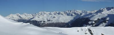 Verbier comme dans un écrin... et plus à droite il y aurait le Gstellihorn, l'arête de l'Arpille, l'Arpelistock, le Wildhorn et la haute route bernoise |