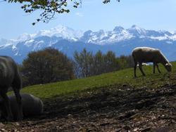Salève avec des violettes et des moutons